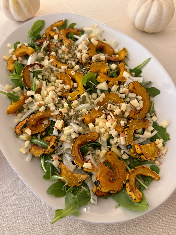 This was the bright contrast to all the cozy dishes. The salad had roasted delicata squash, shaved fennel, diced apple, pumpkin seeds, and arugula and was tossed in a lemon, mustard, and olive oil dressing. I loved how it looked on the table and it was also a refreshing contrast to the other richer dishes.