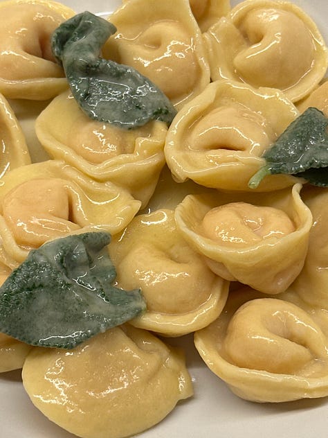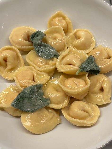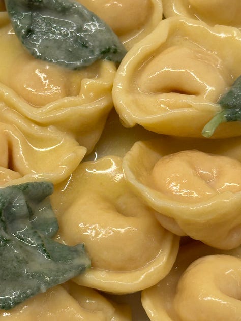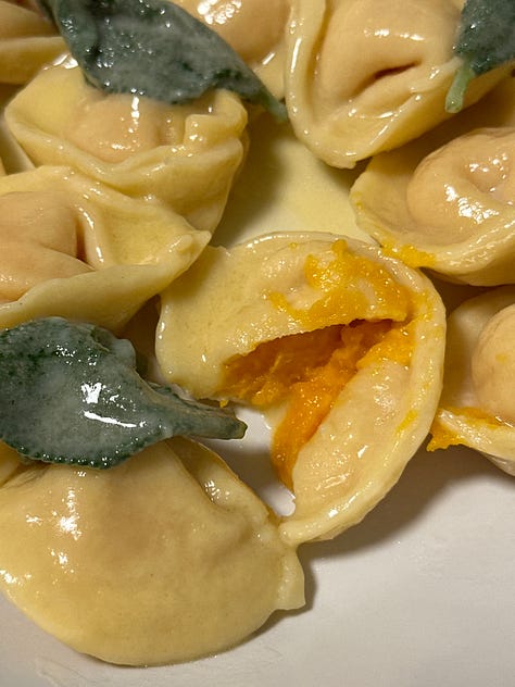 Pumpkin tortelli are a comforting autumn classic. Using roasted butternut squash for the filling gives it a naturally sweet and creamy flavor, which pairs so well with a simple butter, sage, and Parmigiano sauce.